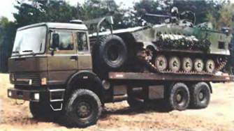 За ними следовали 12-тонные автомобили 260РМ35 (АСР90) 6x4/6x6 и седельные тягачи для работы в составе автопоездов полной массой 90~95 т. В 1977 г. начался выпуск 450-сильных транспортеров 320РТМ45 6х6 (с 1981 г. – АСТ81), разработанных совместно с компанией «ОТО-Мелара» (OTO-Melara) и рассчитанных на доставку по шоссе основных боевых танков со скоростью 60-65 км/ч. Они оснащались открытой или закрытой 2- или 4-дверной кабиной на 2-6 мест, двумя лебедками стяговым усилием по 20 тс, весили около 15 т, имели запас хода 600 км и преодолевали брод глубиной до 1,2 м. В 80-е гг. эти автомобили получили индексы 230.35WM, 260.35HWM, 320.45WTM, новую кабину ФИАТ и простую 4-ступенчатую коробку передач. С 1980 г. изготовлялся также малый танковый тягач 190.45Т (6Х4) для работы с 45-тонным полуприцепом. На военных автомобилях марка ИВЕКО-ФИАТ сохранялась до 1996 г.