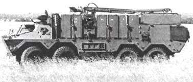 Многоместные кузова с пуленепробиваемыми стеклами, 20 мм пушкой и противоминным бронированием имели также бронетранспортеры «Ингве» (Ingwe) 4x4, построенные на шасси «Касспи-ра» и достигавшие скорости 100 км/ч. В отличие от них созданный в 1987 г. опытный бронеавтомобиль «Фэлкон» (Falcon) 4x4 получил низкий 8-местный кузов вагонного типа с 5 широкими дверями с пневмоприводом, обеспечивавшими быстрое покидание машины. Схожую с ним бронемашину RG-12 затем выпускала фирма ТФМ. Компания «Сэндок-Острэл» начала также разработку тяжелых бронеавтомобилей, получивших затем марку «Руйкэт» (Rooikat), и шасси для самоходной 155-мм гаубицы G6 (6x6). Завершить эти работы не удалось: в 1988 г. ее приобрела компания «Рёймек ОМ К» (Reumech ОМС), продолжавшая до 1992 г. выпуск прежней техники под маркой «Рёймек-Сэндок».