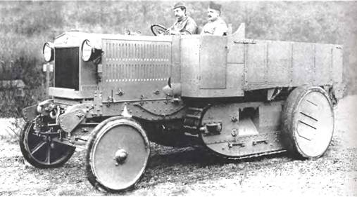 В1924 г. на пушечно-литейном заводе в Сэн-Шамоне под руководством подполковника Римаильо (Rimailho) были построены два колесно-гусеничных тягача, известных под маркой «Сэн-Шамон». Это были 80-сильные грузовики, у которых передние управляемые колеса крепились на продольных рычагах, а задние ведущие – на эксцентриковых механизмах. При буксировке тяжелых орудий их приподнимали над землей и ведущими становились две гусеницы, установленные по бокам рамы. На колесах тягач развивал скорость 19 км/ч, на гусеницах – 8 км/ч.