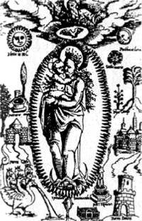 Здесь вы можете увидеть и семиголового дракона, и Солнце, и Луну, и Бога-отца, и Духа-Руах, и Исуса-Солнце с лунной Девой-Артемидой