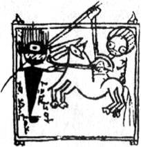 Царь Соломон протыкает копьём дьявола (Асмодея). Со средневекового амулета