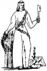 БАБА ЯГА-КОСТЯНАЯ НОГА— богиня войны. Вот что писал о ней Без-Корнилович М.И. в книге «Исторические сведения о примечательных местах в Белоруссии с присовокуплением и других сведений к ней же относящихся». СПб., 1855 г.: «За рекою Полотою в поле находится озерко Воловое: о нём есть предание, будто бы в древности… при оном озере стояли капища ПЕРУНА и БАБЫ-ЯГИ». Из этих слов видно, что Яга была таким же полноправным божеством, как и Перун, и имела свои места поклонения. Ныне же это сказочный персонаж, летающий в ступе, которую она погоняет пестом, заметая свои следы помелом, привязанным к ступе сзади. С.Ушаков утверждал, что Яга встречает парней, поит, кормит, в баньке парит и кладёт на ложе — исполнять супружеские обязанности. Уклоняющимся мстит беспощадно. Место проживания Яги — избушка на курьих ножках на опушке леса. Потолок низкий — нос в потолок врос (у лежащей на печи!). Это свидетельствует о погосте — месте захоронения покойников. Так хоронили своих умерших наши северные соседи — финноязычные племена. Вокруг избушки забор из человеческих костей. На шестах натыканы черепа, глазницы которых по ночам светятся и освещают всю поляну. К утру они прекращают светиться.