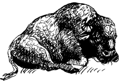Бизон (Bison) – ближайший родственник зубра. Живет он в Северной Америке. Внешне он очень похож на зубра, но гораздо массивнее из-за еще более низко посаженной головы и особенно густой и длинной шерсти, покрывающей голову, шею, плечи, горб и частично передние ноги. Шерсть достигает в длину полметра и образует сплошную спутанную гриву, почти закрывающую глаза и свешивающуюся с подбородка и горла в виде косматой длинной бороды. Рога у бизона короткие, формой напоминают рога зубра, но обычно тупые. Хвост короче, чем у зубра. Считают, что бизоны жили еще во времена мамонтов.