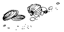 Есть моллюски, у которых раковина состоит из двух половинок. Ученые их называют двухстворчатые. Тело у них состоит из туловища и ноги и покрыто мантией. На заднем конце тела складки мантии прижимаются друг к другу, образуя два сифона: нижний и верхний. Через нижний сифон вода поступает в мантию и омывает жабры. А через верхний сифон вода выбрасывается наружу.
