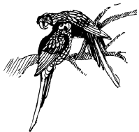 птица, которая может выучить некоторые слова и даже мелодии. Попугай способен подражать человеческой речи. Оперение попугаев – самое разнообразное. В большинстве случаев они очень яркие и пестрые. В основном зеленые, много также синего, желтого. На голове у многих видов попугаев имеется хорошо развитый хохолок, как у петуха.Очень интересен у этой птицы клюв. Он загибается книзу. Это помогает не только хорошо захватывать пищу, но и цепляться за ствол дерева. Иногда из-за этого клюв попугая называют третьей ногой. А вот ногами он может подносить пищу к клюву. Любопытно, что каждая нога может отгибаться в разные стороны.
