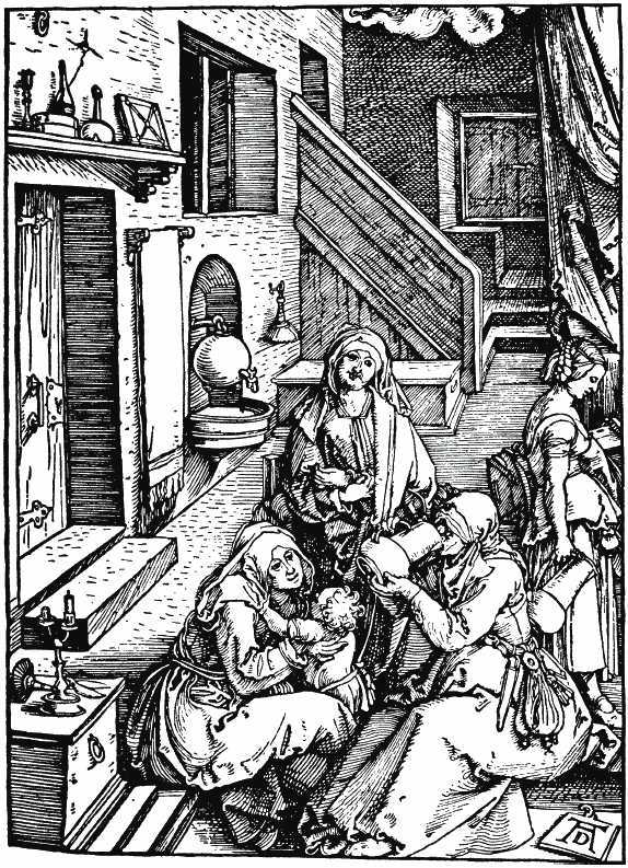 Такая дверь способна была выдержать и выдерживала при необходимости прямую атаку. Каждый человек старался защитить себя и свое имущество. Дверь открывалась сразу в главную комнату, а внутренность дома — видно с первого взгляда — представляла собой единый зал, разделенный на более мелкие помещения деревянными перегородками. Тут не было никакой возможности, да и нужды в личном уединении, какой-то частной жизни. Комнаты примыкали непосредственно друг к другу, — съедающий пространство коридор можно было использовать лишь в очень больших зданиях. Спальня одновременно служила гостиной, это было общепринято, а члены семьи или даже гости небрежно ходили вокруг постели, пустой или занятой. В богатых домах кровать была массивным сооружением, почти маленькой комнатой. Вошедшее в общее употребление в XVI веке ложе с балдахином стало существенным шагом вперед по сравнению с громоздкими и высокими, открытыми со всех сторон кроватями прежних дней (см. рис. 35).