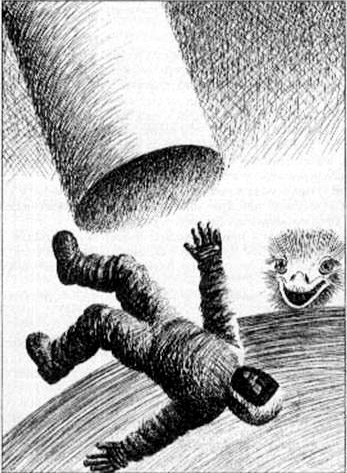 На этот раз при приземлении он споткнулся и, все еще держа лазер, перекатился на спину, лицом к звездам. Затем он приподнялся, упираясь локтями, и увидел, как горбатая громадина разрывает поверхность, проезжая мимо него. Объект походил на жука размером со стадион и перемещался на суставчатых металлических ногах. Он был настолько огромным, что заслонял звезды.