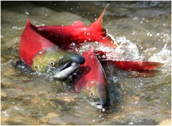 На Камчатке, во время нереста лососевых рыб, я неоднократно наблюдал батальные бои между самцами, поскольку самок во время нерестового хода практически всегда не хватает. Самцы горбуши с остервенением дрались, пока один из них не упадет замертво.