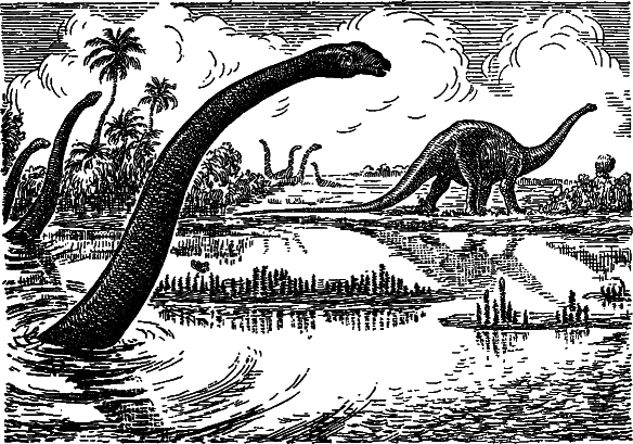 В водах появились диатомовые водоросли. Большого прогресса достигли насекомые. Продолжалось развитие рептилий, некоторые динозавры достигали чудовищных размеров: диплодок — 30 м в длину, стегозавр — более 6 м в высоту (рис. 13—15). В течение юры пресмыкающиеся освоили все ниши жизни: море, сушу, воздух. Появились первые птицы, продолжалось развитие млекопитающих.