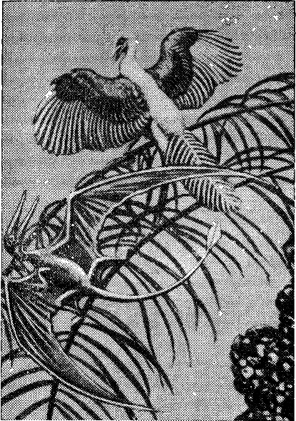 Юрские ихтиозаврыРис. 15. Летающие ящеры юрского периода: лишенный перьев птеродактиль и пернатый археоптерикс, родоначальник птиц