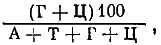 Отношение Г + Ц/А + Т варьирует и может в ряде случаев служить показателем положения организма в системе. Обычно используется несколько иной показатель — процентное отношение Г + Ц ко всей сумме нуклеотидов, т. е.
