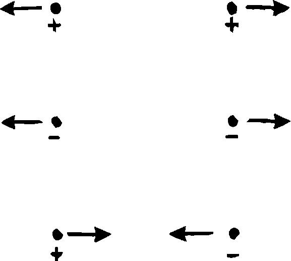 Далее, теория полагает, что обе электрические жидкости одинакового рода отталкивают друг друга, в то время как обе жидкости противоположного рода притягивают. Это можно представить графически так, как это сделано на рис. 29.