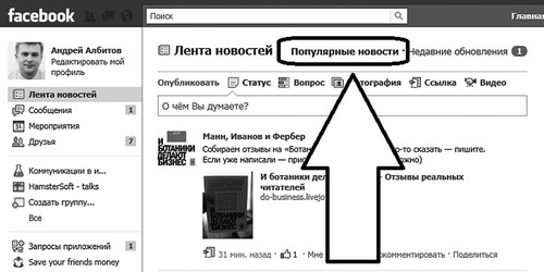 Мой опыт показывает, что для этого достаточно, чтобы вы и ваши друзья «залайкали» новость 5–10 раз и написали несколько комментариев (более пяти). Тогда новость попадает в список популярных почти у всех.