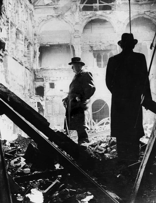 Осмотр разрушений здания парламента после немецкой бомбардировки. 1941 г.