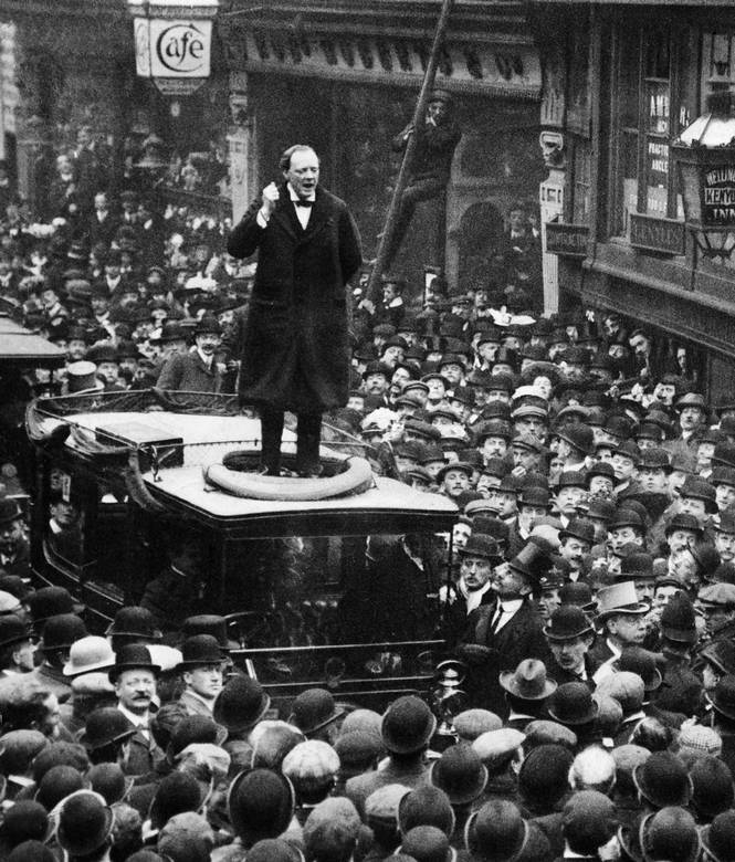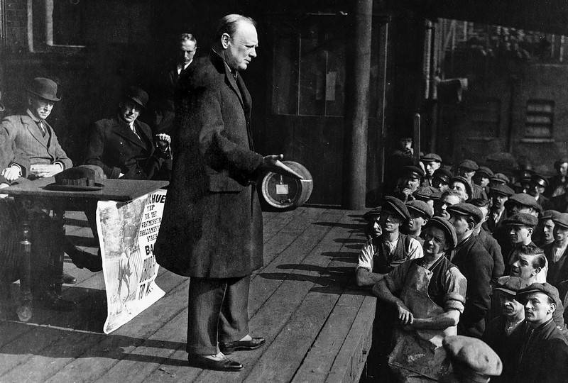 На встрече накануне дополнительных выборов по избирательному округу Вестминстерского аббатства. Черчилль был независимым кандидатом и проиграл с разницей всего лишь в 43 голоса. 1924 г.