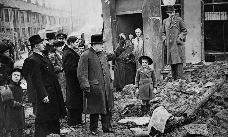 В Бристоле после рейда немецких бомбардировщиков. Вместе с Черчиллем Клементина и американский посол Джон Гилберт Уайнант. Апрель 1941 г.