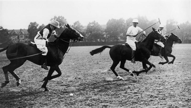 Черчилль (слева) участвует в ежегодном матче по конному поло между палатой общин и палатой лордов. Команда палаты общин, за которую играл Черчилль, выиграла матч со счетом 6 : 2. 1925 г.