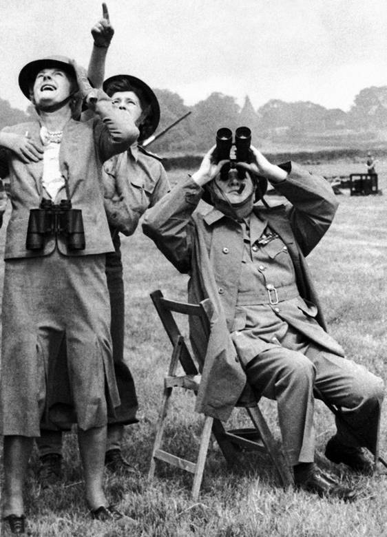 Черчилль с Клемми и дочерью Мэри следят за самолетом-снарядом. Июнь 1944 г.