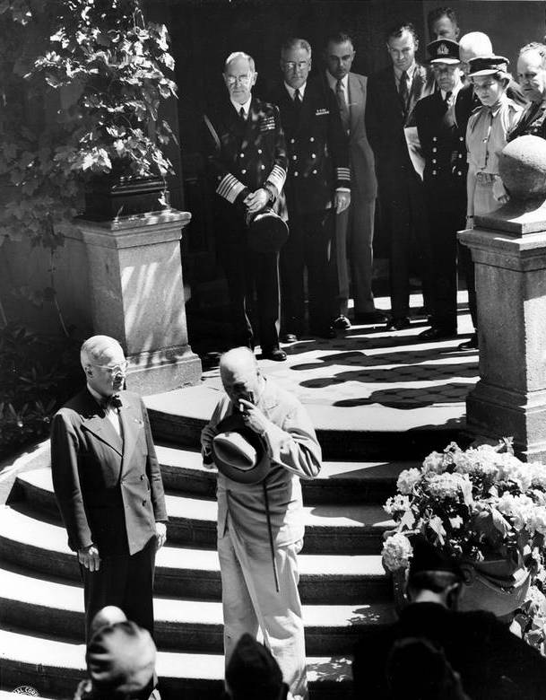 Черчилль вместе с американским президентом Гарри Трумэном на последней конференции со Сталиным. Потсдам, 15 июля 1945 г.