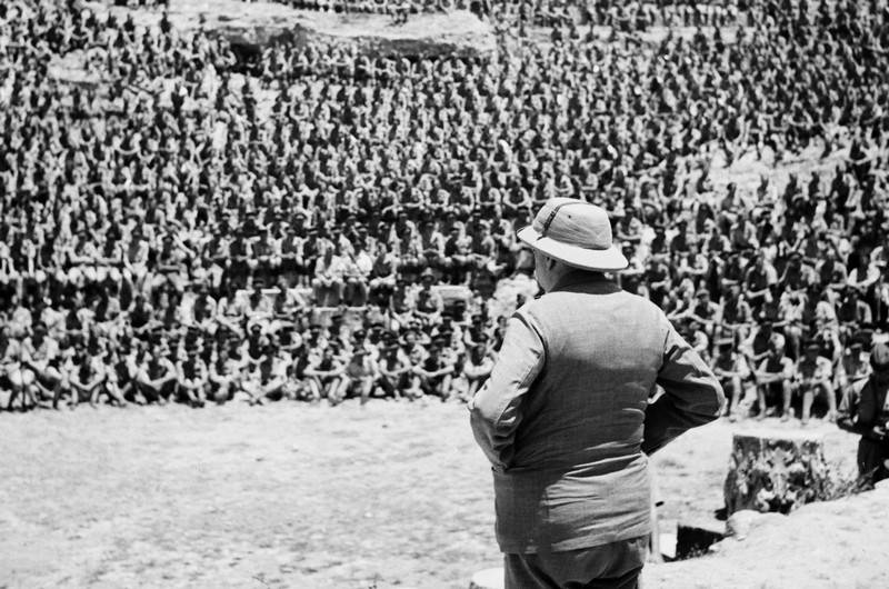 Выступление Черчилля перед войсками союзников в римском амфитеатре Карфагена. 1 июня 1943 г.