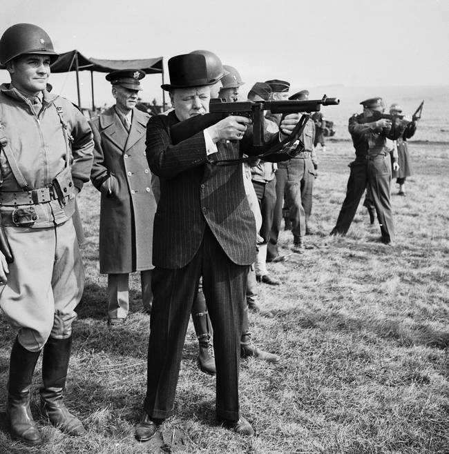 Испытание пистолета-пулемета Томпсона на юге Англии за три месяца до высадки союзных войск в Нормандии. 1944 г.