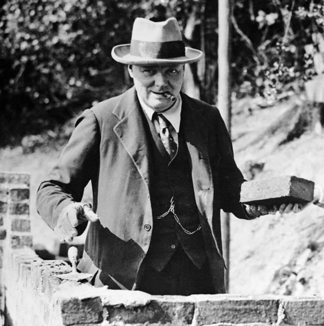 Каменщик Уинстон Черчилль строит стену в Чартвелле. 1928 г.