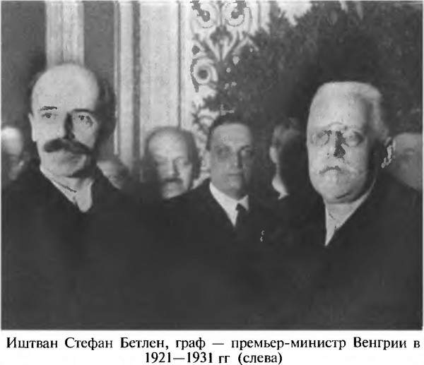 Иштван Стефан Бетлен, граф — премьер-министр Венгрии в 1921–1931 гг. (слева)