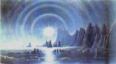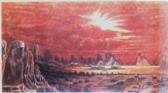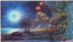 Обычно у всех, кто смотрит картины художников-фантастов, возникает вопрос: “А как вам удалось это представить?” Действительно, если художник-пейзажист захочет воссоздать, например, картину заходящего солнца, то ему помогут в этом вполне реальные впечатления. Если же такую задачу поставит перед собой художник-фантаст, то ему придется полагаться в основном на свое воображение. Причем - и это немаловажно - мир, рожденный в его фантазии, не должен противоречить данным научных исследований. Этим самым я вовсе не хочу сказать, что произведения художников-фантастов не должны ничем отличаться от фотоснимков, привезенных космическими кораблями. Нет, это живопись, живущая на основе вечных законов искусства, однако выход ее проблематики за земные рамки порождает новые цветовые комплексы, измененные перспективы, необычные формы. В этом убеждают работы сочинского художника-фантаста Георгия Курнина.