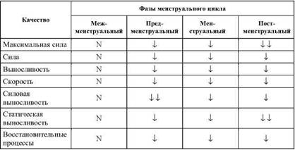 Специальная работоспособность в различные фазы менструального цикла