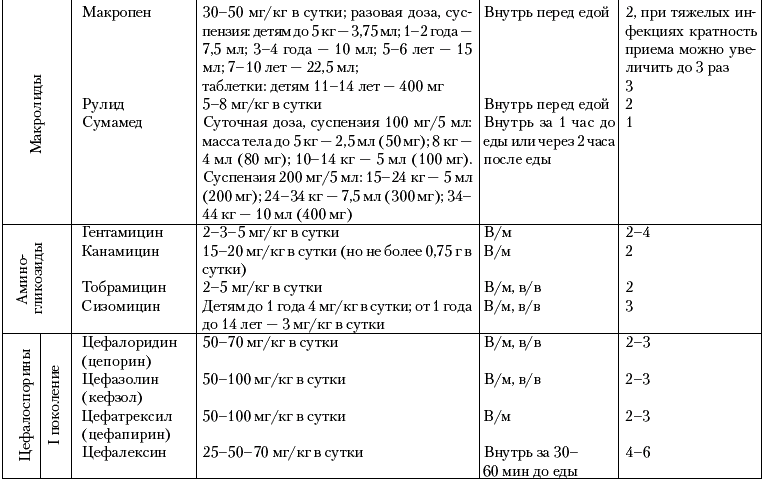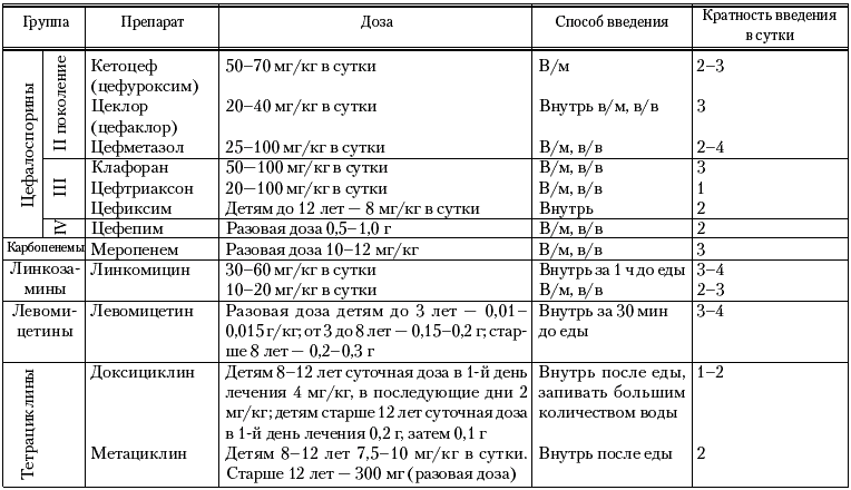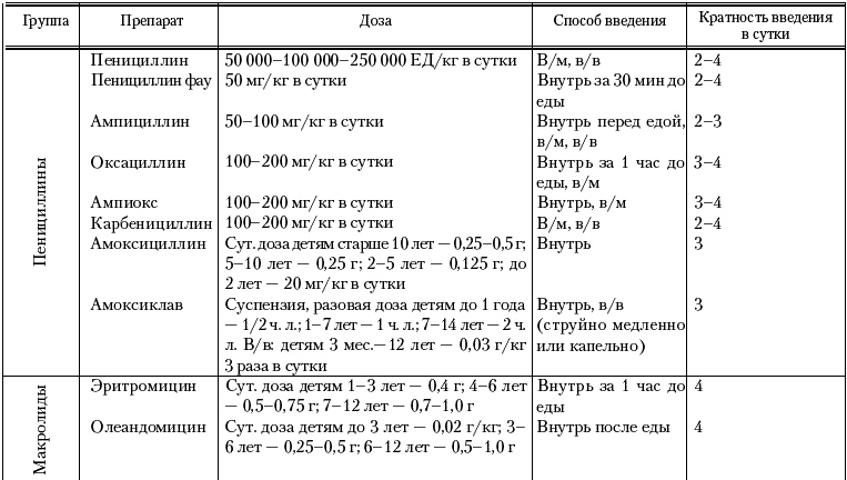 Дозы и методы применения некоторых антибиотиков в педиатрии