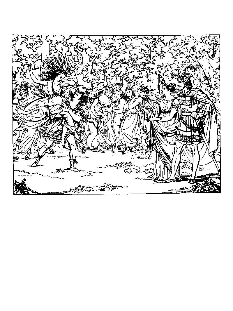 Пробежал по кругу мимо, Сделав бешеный прыжок, Бросился неудержимо К самой дикой и увлек.Эвфорион (внося на руках молодую девушку)