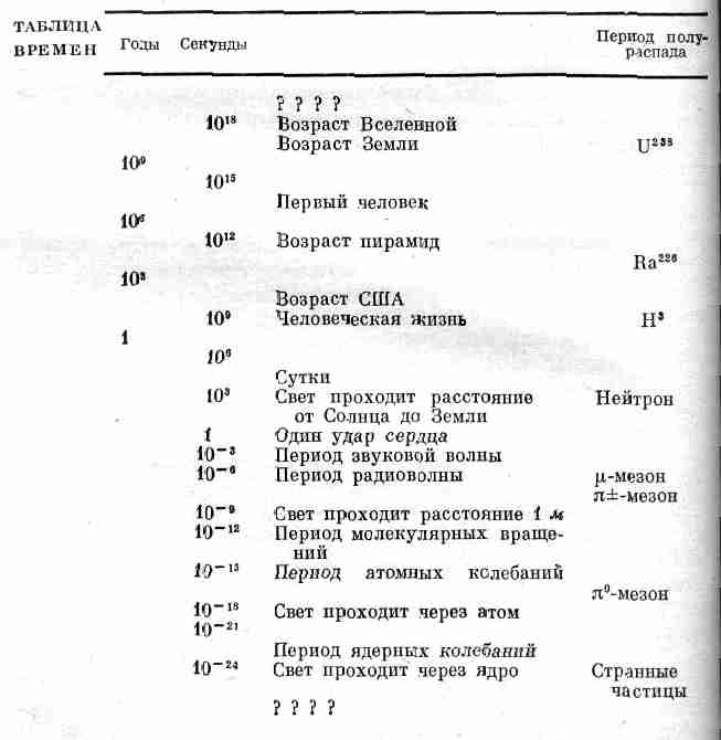 Развивая технику эксперимента, а если необходимо, меняя определение понятия «время», можно обнаружить еще более быстрые физические процессы. Мы, например, можем говорить о периоде вибраций ядра или о времени жизни