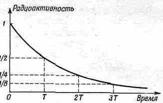 Радиоактивность падает в два раза за каждый период полураспада Т.