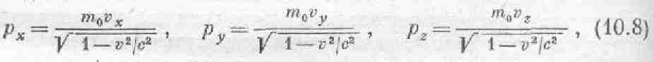 где m– масса покоящегося тела, c – скорость распространения света. Из этой формулы видно, что при обычных скоростях (если v не очень велико) m очень мало отличается от m, а импульс поэтому с очень хорошей точностью выражается старой формулой.