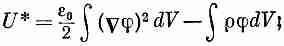 Только теперь мы начинаем понимать, как решать задачи, в которых мы не знаем, где расположены все заряды. Пусть мы имеем проводники, на которых как-то распределены заряды. Если потенциалы на всех проводниках зафиксированы, то наш принцип минимума все еще разрешается применять. Интегрирование в U* мы проведем только по области, лежащей снаружи всех проводников. Но раз мы не можем на проводниках менять j, то на их поверхности f=0, и поверхностный интеграл