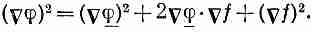 Дальше, руководствуясь нашим старым общим правилом, мы должны очистить интеграл от всех производных по f. Посмотрим, что это за производные. Скалярное произведение равно