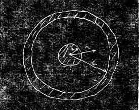 У внутреннего проводника потенциал равен, скажем, V, а у внешнего— нулю. Пусть радиус внутреннего проводника будет равен а, а внешнего — b. Теперь мы можем предположить, что распределение потенциалов между ними — любое.