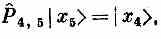 Стало быть, все члены гамильтониана, кроме тех, куда входит атом № 5, дадут нуль. Операция P^4,5, действуя на состояние |x5>, обменивает спинами атом № 4 (со спином вверх) и атом № 5 (со спином вниз). В результате появляется состояние, в котором все спины смотрят вверх, кроме атома в точке 4. Иначе говоря,