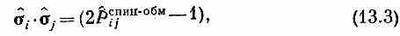 Теперь уже легко подсчитать, что происходит в различных состояниях. Например, если и i и j смотрят вверх, то обмен спинами ничего не меняет, так что P^ij, действуя на состояние, опять приводят к тому же состоянию, т. е. оно равнозначно умножению на +1. Выражение Р^ij– 1/2