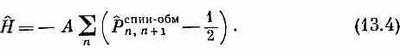 просто равно 1/2. (В дальнейшем слова «спин-обм» над Р мы писать не будем.)В основном состоянии все спины направлены вверх; значит, обмен любой парой спинов приводит опять к исходному состоянию. Основное состояние является стационарным. Если подействовать на него гамильтонианом, получится опять то же состояние, умноженное на сумму чисел —(А/2), по одному на каждую пару спинов. Иначе говоря, энергия системы в основном состоянии составляет по —А/2 на атом.