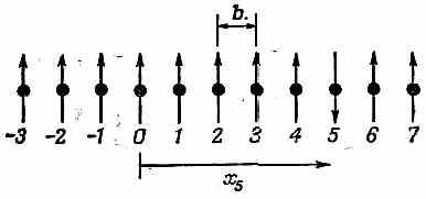 Фиг. 13.1. Базисное состояние |x5> системы спинов, расположенных по одной линии.