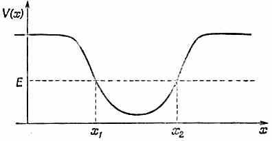 Фиг. 14.3. Потенциальная яма для частицы, движущейся вдоль оси х.