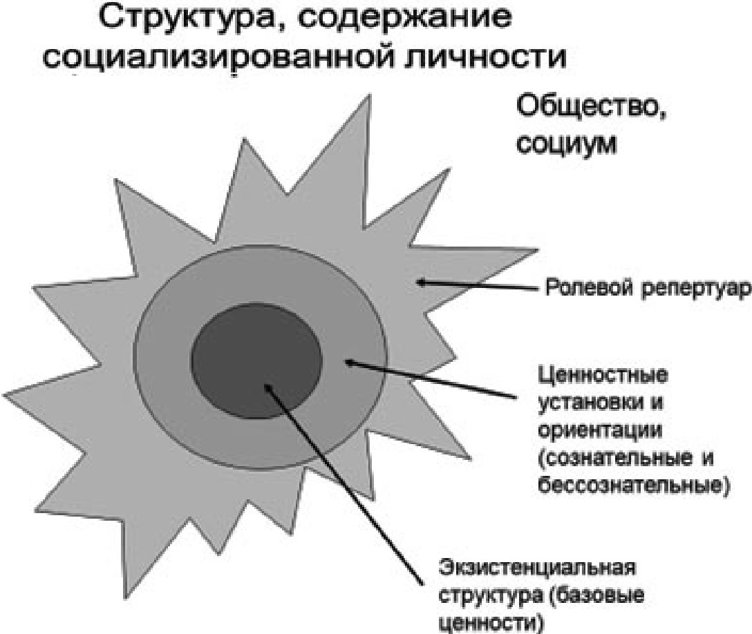 В этой связи можно говорить также об основных этапах формирования и развития личности, по мере прохождения которых складываются соответствующие уровни ее структуры как различной степени интеграции программ социальной деятельности. На первом этапе складывается уровень «биологической поддержки» активности человека: установок, направленных на удовлетворение биологических потребностей. Эти «первичные» установки создают основу реализации диспозиций, с которыми связан следующий этап формирования личности. Он включает освоение личностью ролевого репертуара, характеризуя нормативно – ценностные системы социально – культурной среды, в которых функционирует личность. Именно второй этап становления собственно личности, он связан с формированием диспозиционной структуры, в которой можно выделить несколько слоев: 1) бессознательные ценностные ориентации; 2) сознательно принимаемые отношения и значения деятельности; 3) сознательно культивируемые отношения; 4) ценностные установки не на конкретные виды деятельности, а на всю жизнедеятельность и действительность во всей их полноте. Таким образом, создается достаточно интегрированная система мотиваций как направленности личности от конкретных форм ее активности в труде, семье, досуге до мировоззренческих представлений о цели, смысле жизни, жизненном пути и т. д.