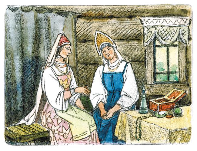 А сёстры её завидущие да жаднющие, из себя-то они некрасивые, а модницы-перемодницы – весь день сидят да белятся, да румянятся, да в обновки наряжаются, платье им не платье, сапожки не сапожки, платок не платок.
