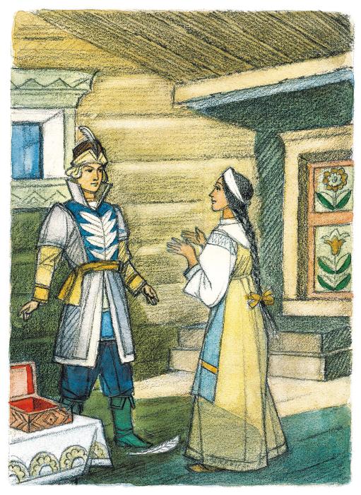 – Батюшка, купи пёрышко Финиста – ясна сокола.