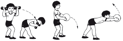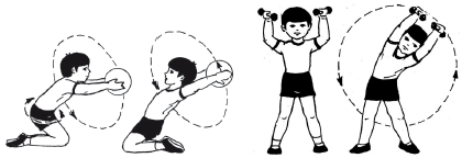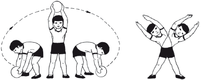 7. Круговые движения туловищем (32, 36, 265 из серии упражнений для воспитания гибкости; 357, 461, 462, 490 из серии упражнений для воспитания силы).