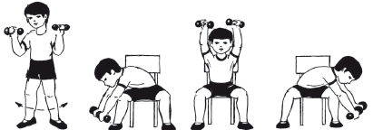 8. Повороты туловища влево и право из положения стоя, сидя и наклона вперед (35, 56, 97, 98, 100, 131 из серии упражнений для воспитания гибкости; 452, 455, 480, 499, 491, 618, 621, 646, 647, 658, 673, 674, 676, 679, 682 из серии упражнений для воспитания силы).
