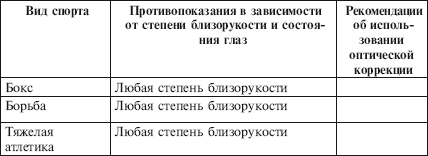 Противопоказания к занятиям спортом лиц, страдающих близорукостью (Р. А.Пинкаченко, 1988)