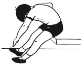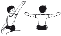 10) из и. п. лежа на спине сесть и наклониться вперед на выдохе (облегченный вариант: из и. п. сидя на полу, на выдохе наклониться вперед);