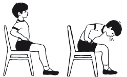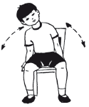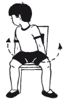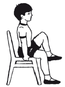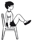 7. И.п. – сидя на табурете, ноги выпрямлены, руки на коленях. На вдохе развести руки в стороны, на выдохе наклониться вперед, стараясь достать пол.